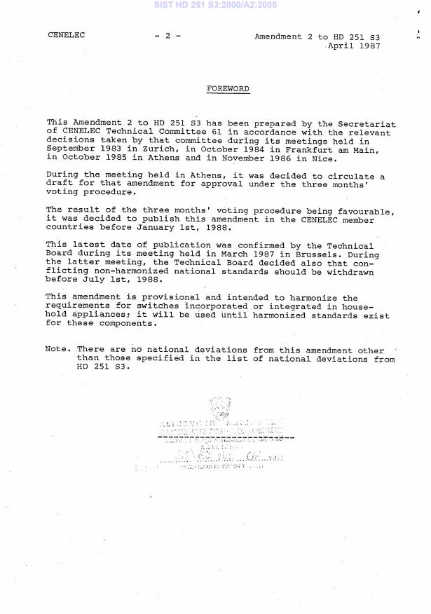 HD 251 S3:1982/A2:1987 is a amendment published by CLC. Its full title is "Safety of household and similar electrical appliances - Part 1: General requirements". This standard covers: D109/162: Publication withdrawn following withdrawal of HD 280.2 S1