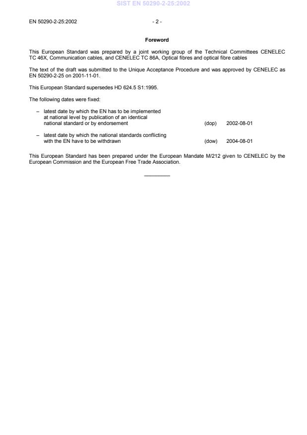 Ta slovenski standard je istoveten z: EN 50290-2-25:2002