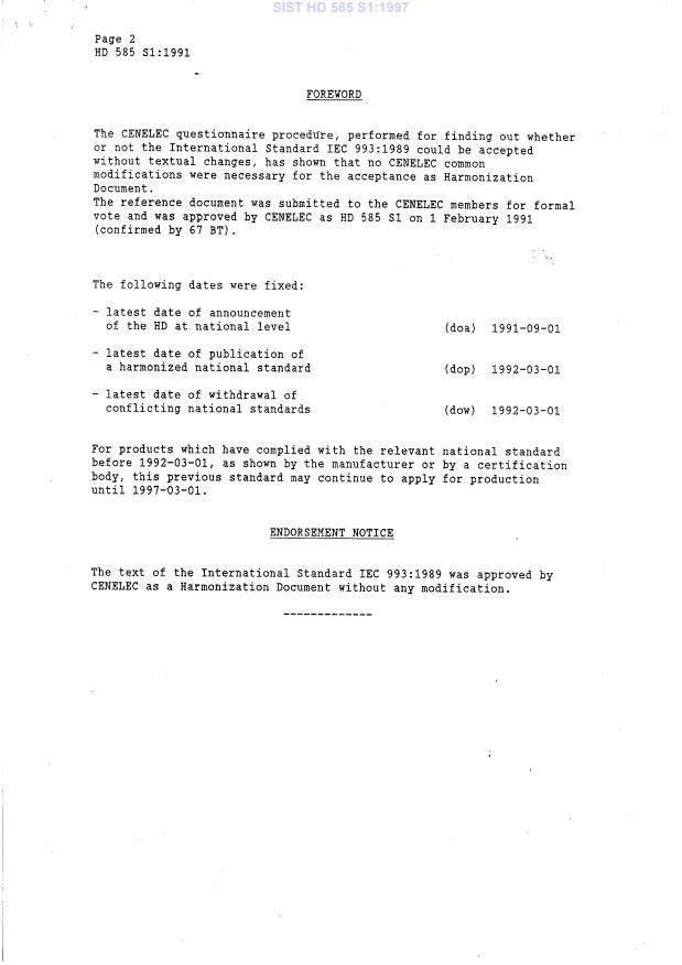 HD 585 S1:1991 has the following relationships with other standards: It is inter standard links to EN 60993:2002. Understanding these relationships helps ensure you are using the most current and applicable version of the standard.