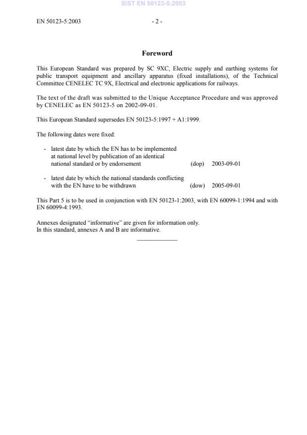 ICS 29.120.60; 45.020 Supersedes EN 50123-5:1997 + A1:1999