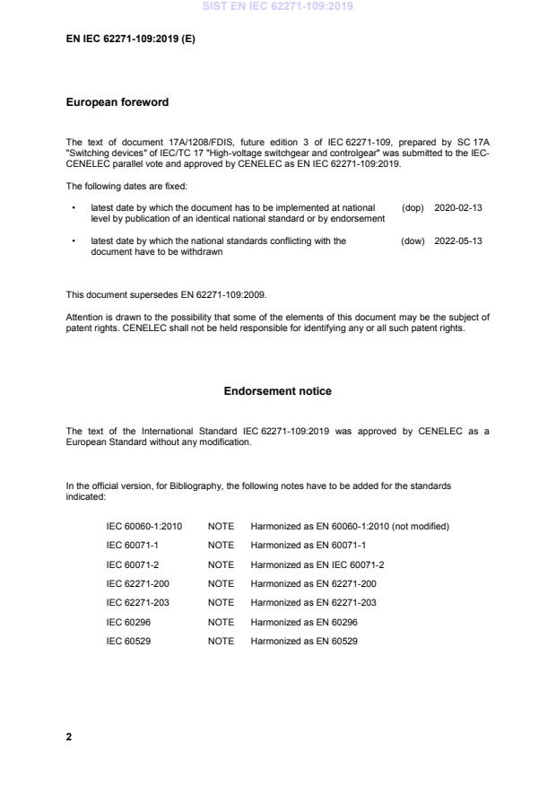Ta slovenski standard je istoveten z: EN IEC 62271-109:2019