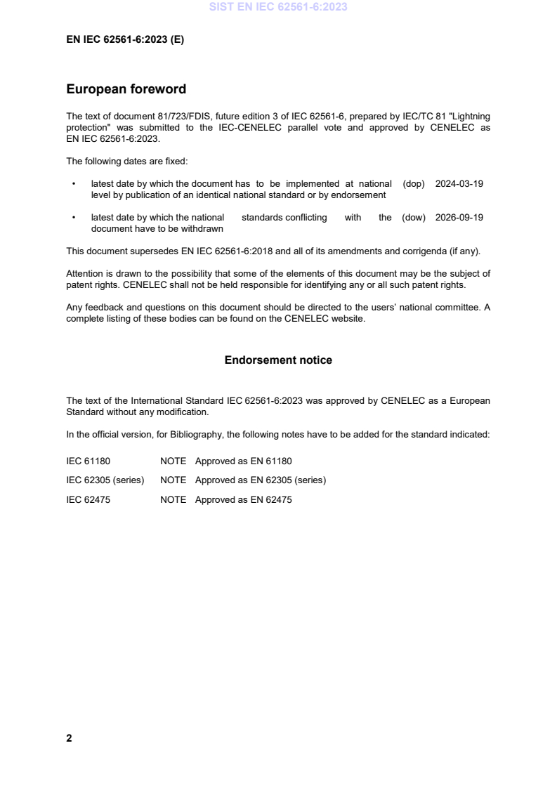 ICS 29.020; 91.120.40 Supersedes EN IEC 62561-6:2018; EN IEC 62561-