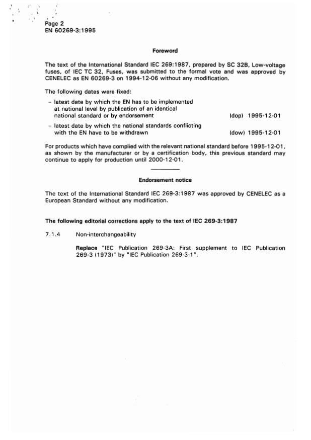 EN 60269-3:1995 is a standard published by CLC. Its full title is "Low-voltage fuses - Part 3: Supplementary requirements for fuses for use by unskilled persons (fuses mainly for household and similar applications)". This standard covers: Applies to 'gG' fuses used by unskilled persons for domestic and similar applications with rated currents not exceeding 100 A and rated voltages not exceeding 500 V a.c.