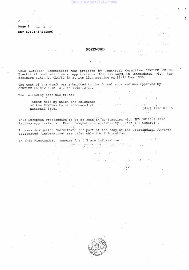 ENV 50121-3-2:1996 has the following relationships with other standards: It is inter standard links to EN 50121-3-2:2000. Understanding these relationships helps ensure you are using the most current and applicable version of the standard.