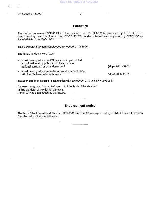 Ta slovenski standard je istoveten z: EN 60695-2-12:2001