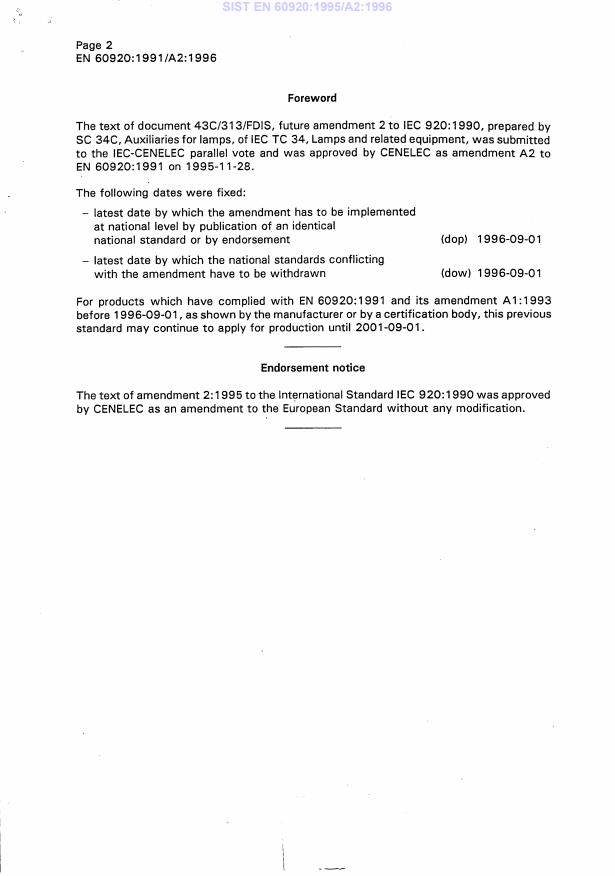 EN 60920:1991/A2:1996