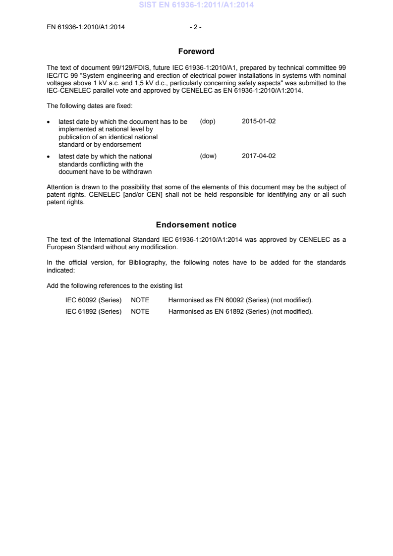 SIST EN 61936-1:2011/A1 : 2014