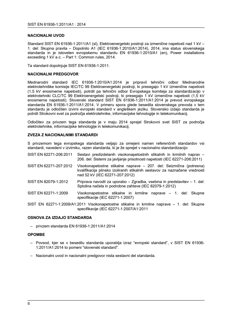 Ta standard dopolnjuje SIST EN 61936-1:2011.