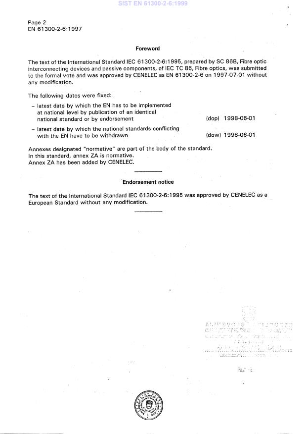 Ta slovenski standard je istoveten z: EN 61300-2-6:1997