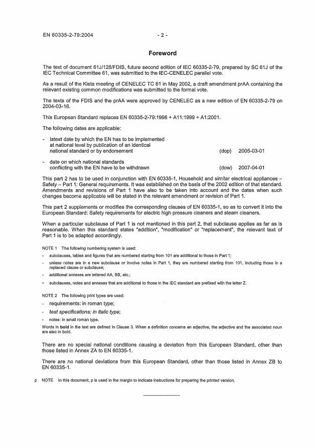 EN 60335-2-79:2004 has the following relationships with other standards: It is inter standard links to EN 60335-2-79:1998/A11:1999, EN 60335-2-79:1998/A1:2001, EN 60335-2-79:1998, EN 60335-2-79:2009, EN 60335-2-79:2004/A2:2007, EN 60335-2-79:2004/A1:2006. Understanding these relationships helps ensure you are using the most current and applicable version of the standard.