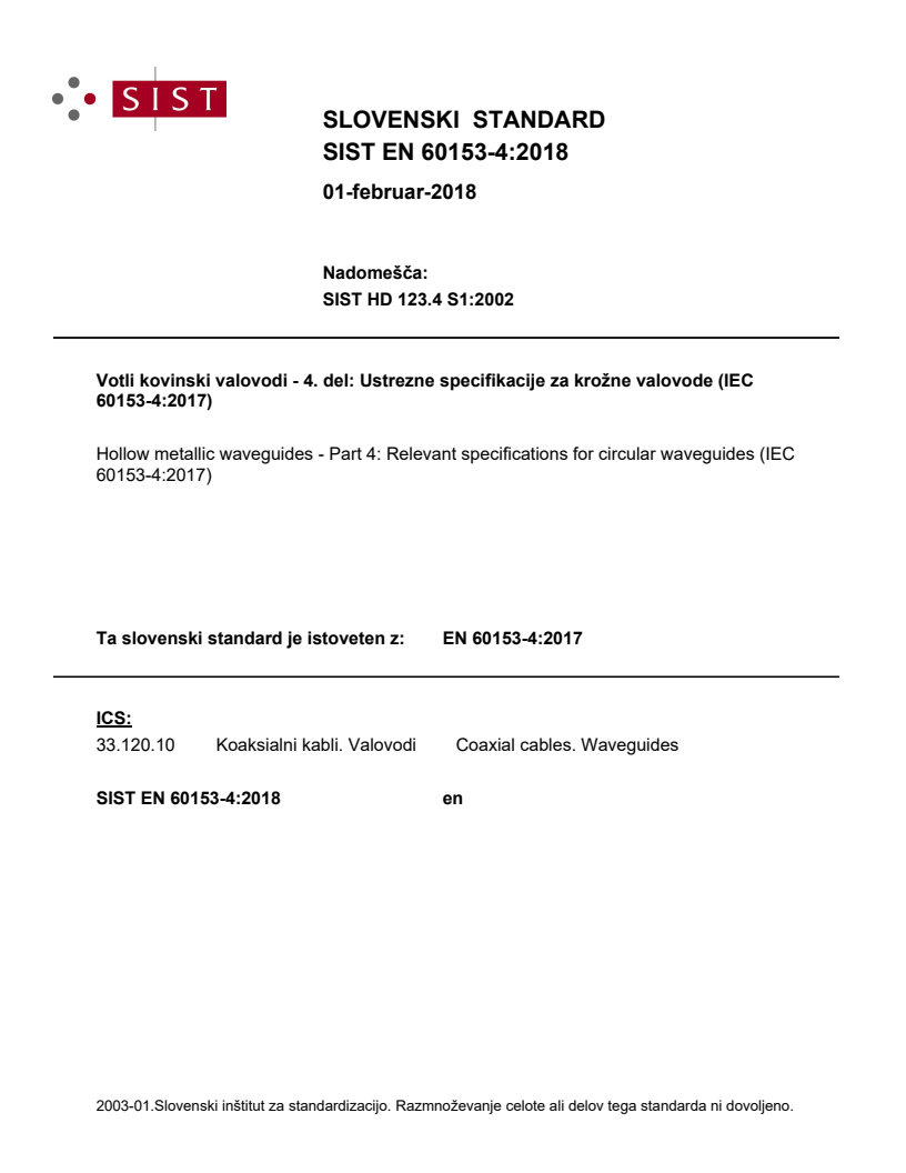 Votli kovinski valovodi - 4. del: Ustrezne specifikacije za krožne valovode (IEC