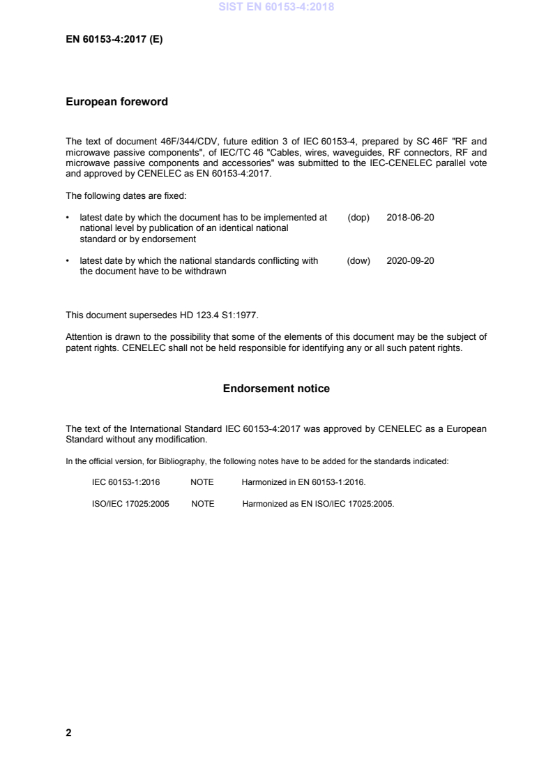 International Standard IEC 60153-4 has been prepared by subcommittee 46F: RF and