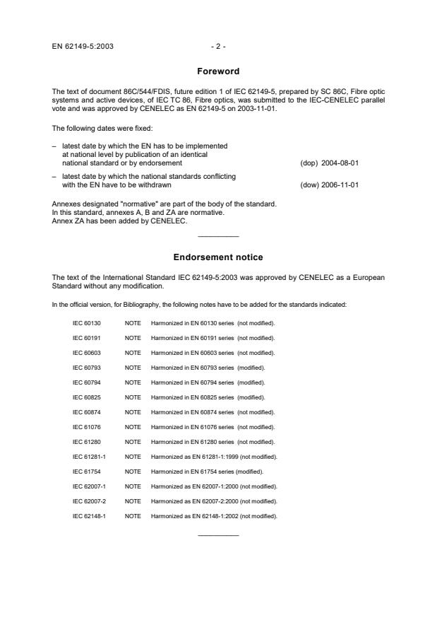 vote and was approved by CENELEC as EN 62149-5 on 2003-11-01.