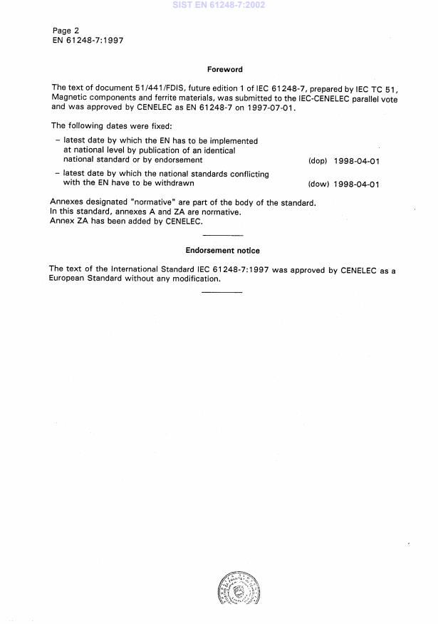 EN 61248-7:1997 is a standard published by CLC. Its full title is "Transformers and inductors for use in electronic and telecommunication equipment - Part 7: Sectional specification for high-frequency inductors and intermediate frequency transformers on the basis of the capability approval procedure". This standard covers: Specifies how to prepare detail specifications for high-frequency inductors and intermediate frequency transformers between 10 kHz and 2 GHz.Includes a blank detail specification, which shows the format and indicates which tests are considered to be appropriate to this type of component.