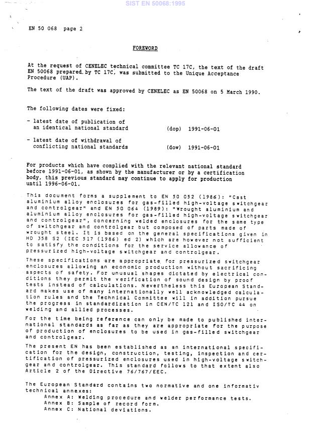 Ta slovenski standard je istoveten z: EN 50068:1991/A1:1993
