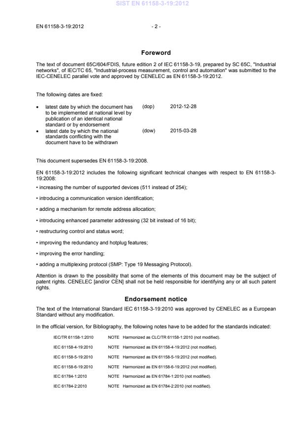 2012-03-22 - Publication editing allocated to cpalagi@cencenelec.eu * Project handled under parallel procedures as FprEN 61158-300 and split into 5 parts to be published as EN 61158-3-12, 14, 19, 21 and 22 * Supersedes EN 61158-3-19:2008 * Superseded by EN 61158-3-19:2014