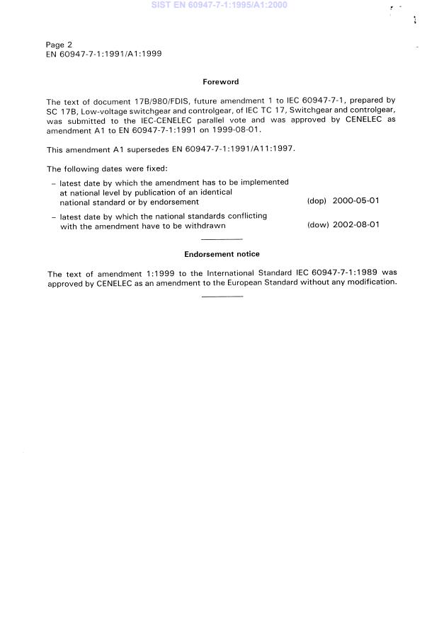 EN following parallel vote * Supersedes A11:1997 * Superseded by EN 60947-7-1:2002