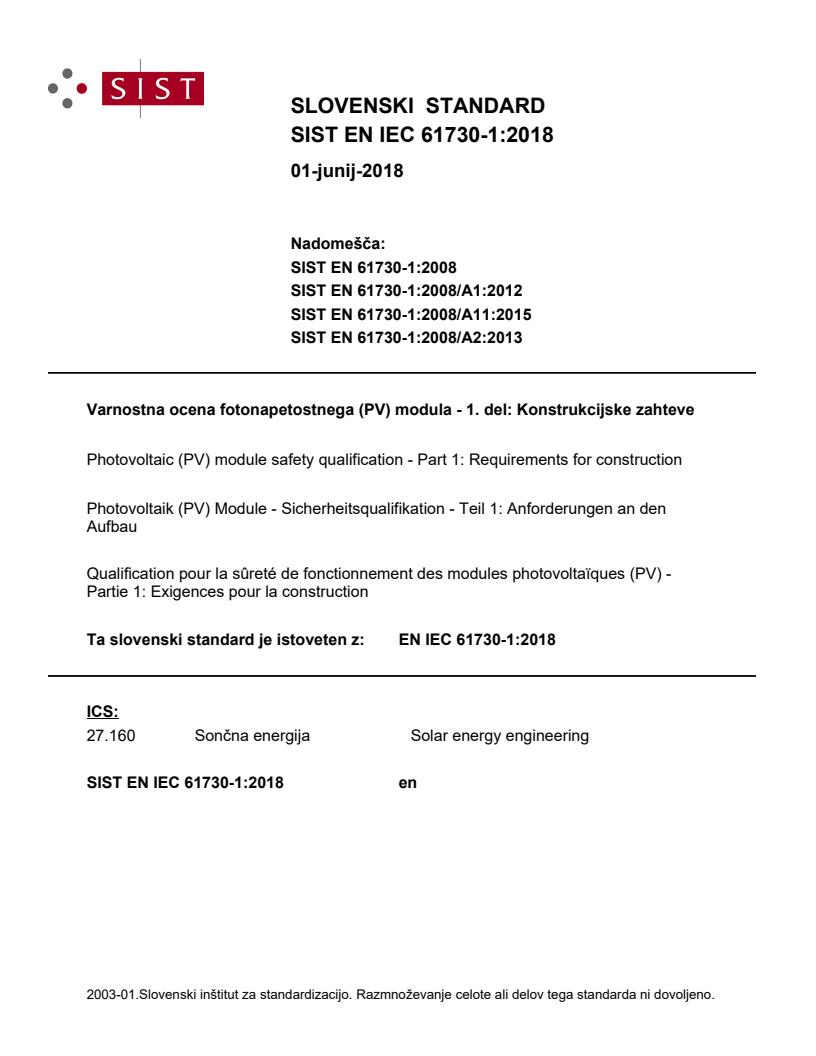 SIST EN 61730-1:2008/A1:2012