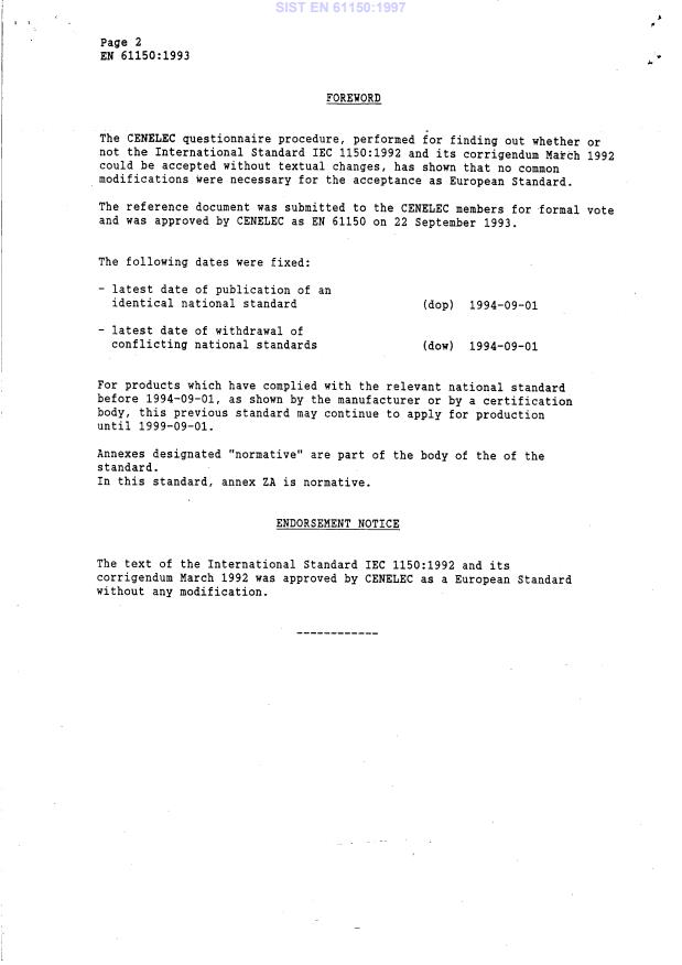 Ta slovenski standard je istoveten z: EN 61150:1993