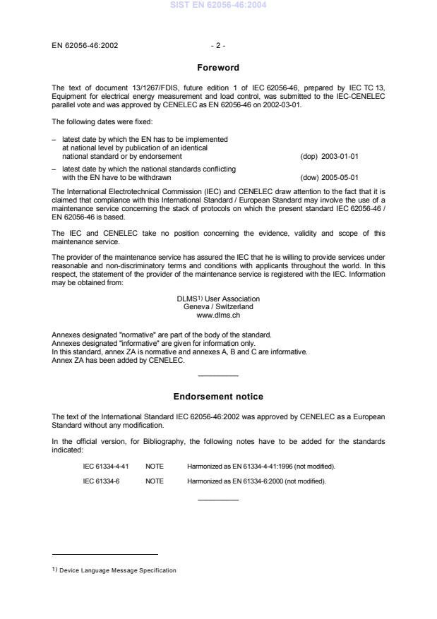 parallel vote and was approved by CENELEC as EN 62056-46 on 2002-03-01.