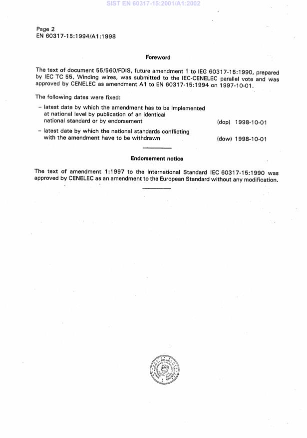 Ta slovenski standard je istoveten z: EN 60317-15:1994/A1:1998