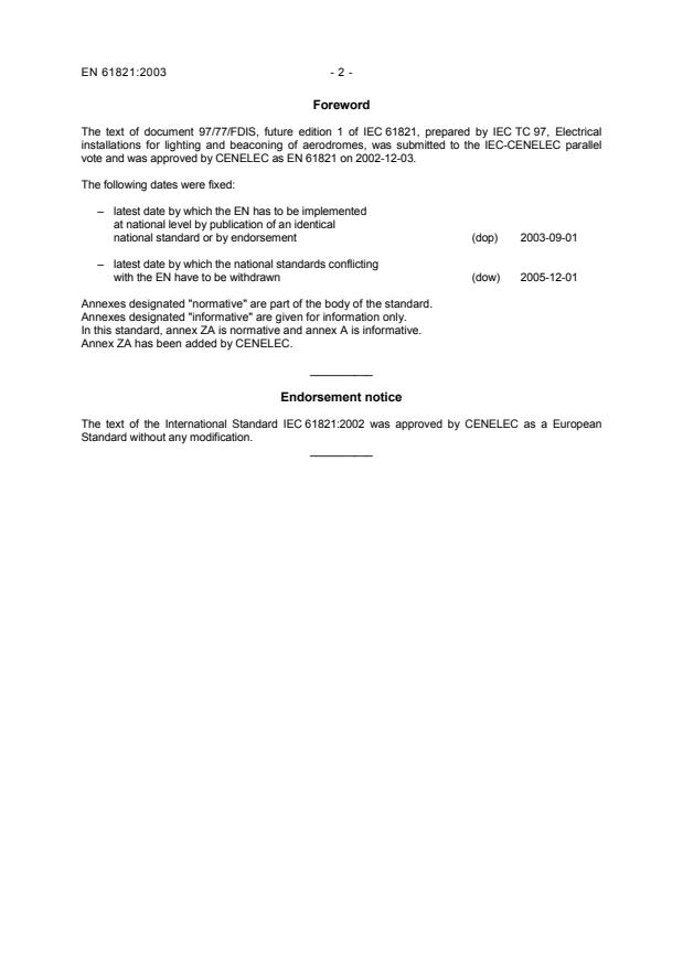 vote and was approved by CENELEC as EN 61821 on 2002-12-03.