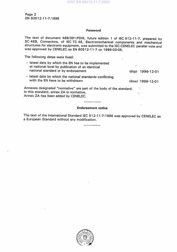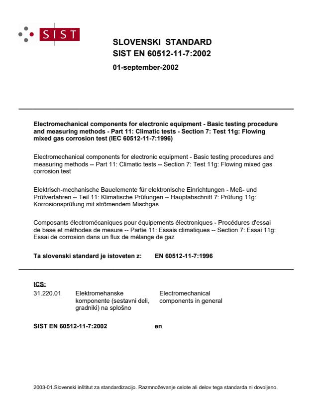 Ta slovenski standard je istoveten z: EN 60512-11-7:1996