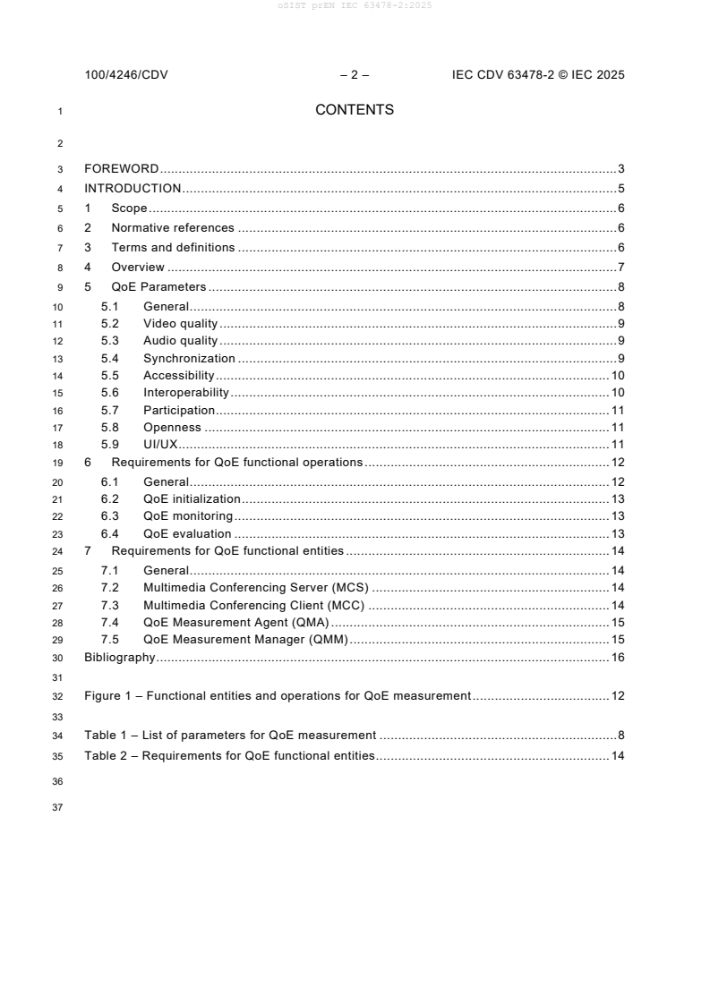 Keywords: EN IEC 63478-2:2025, QoE, multimedia conferencing, QoE measurement, MCC, MCS, QMA, QMM, audio quality, video quality, synchronization, UI/UX, interoperability.