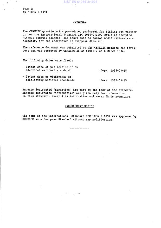 Ta slovenski standard je istoveten z: EN 61086-2:1994