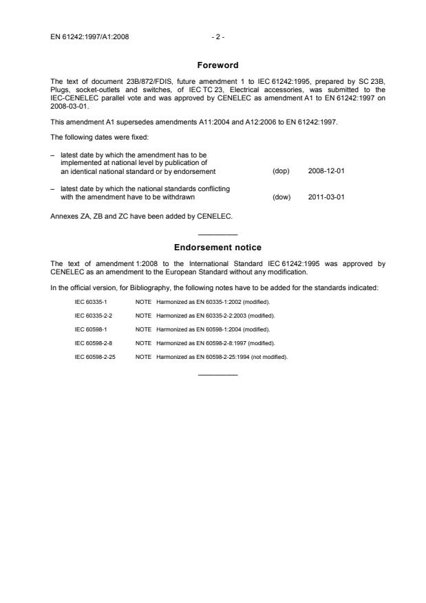 ICS 29.060; 29.120.99 Supersedes EN 61242:1997/A11:2004 and EN 61242:1997/A12:2006