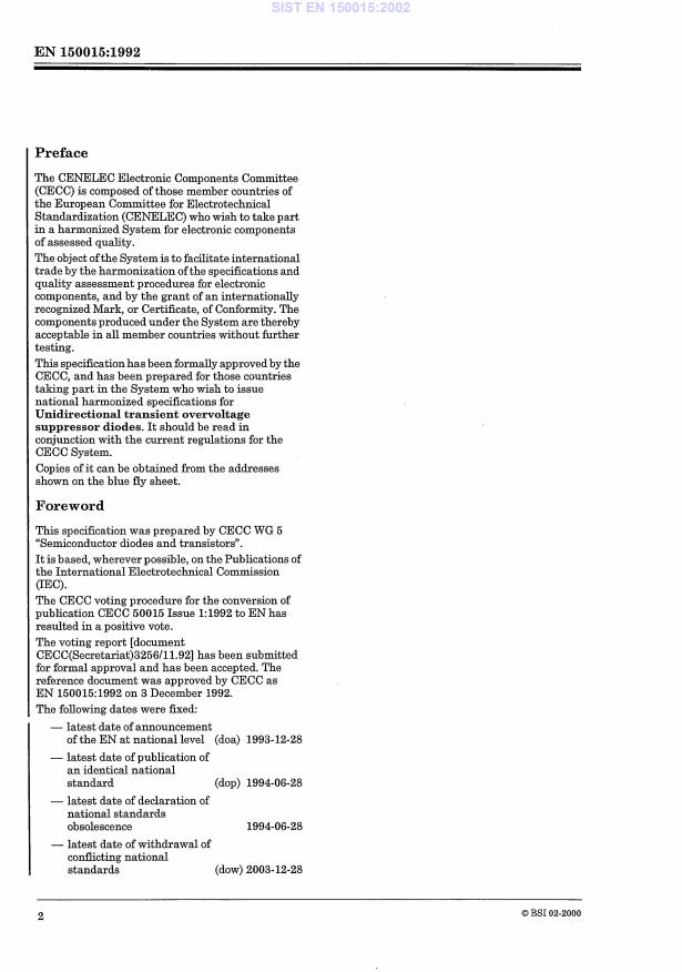 EN 150015:1992 is a standard published by CLC. Its full title is "Blank Detail Specification: Unidirectional transient overvoltage suppressor diodes". This standard covers: D114/033: Withdrawn