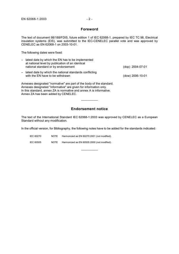 EN 62068-1:2003 is classified under the following ICS (International Classification for Standards) categories: 29.080.30 - Insulation systems. The ICS classification helps identify the subject area and facilitates finding related standards.