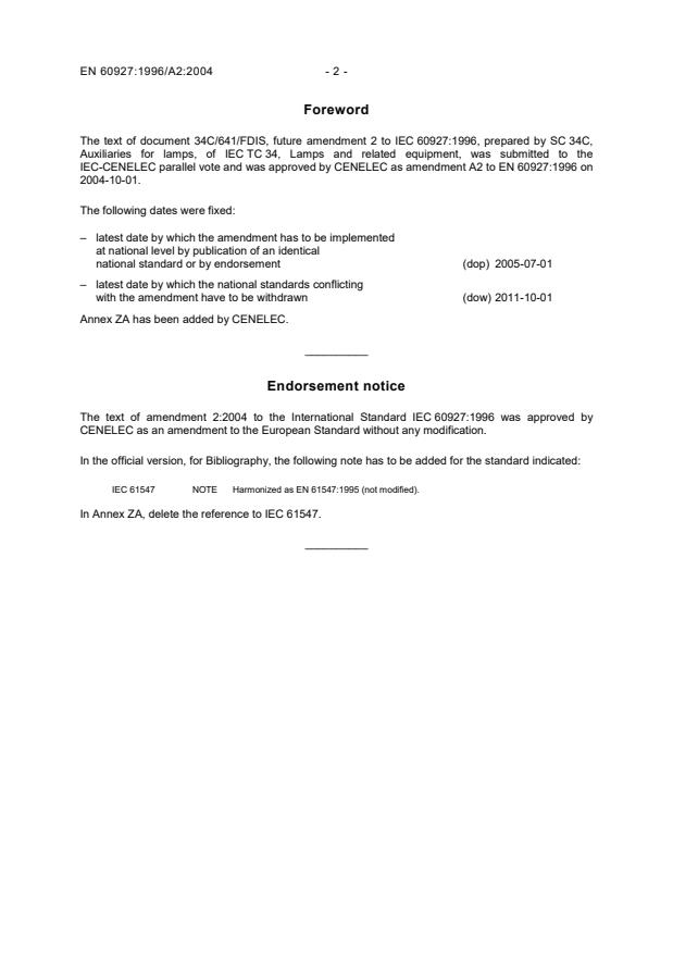 IEC-CENELEC parallel vote and was approved by CENELEC as amendment A2 to EN 60927:1996 on