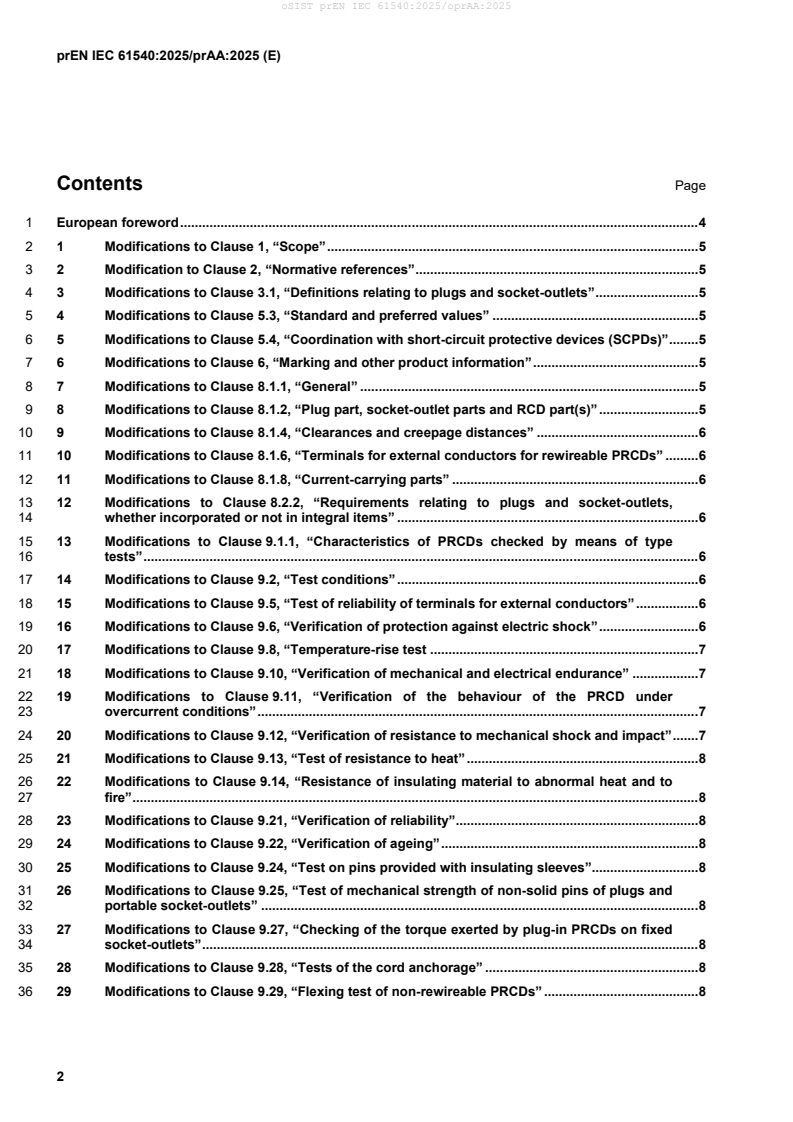 36 29 Modifications to Clause 9.29, “Flexing test of non-rewireable PRCDs” . 8