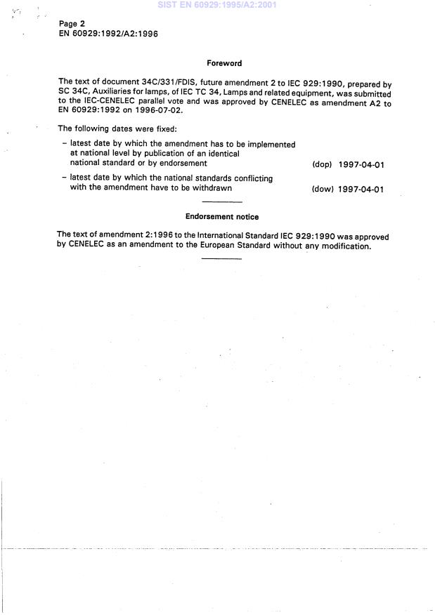 Ta slovenski standard je istoveten z: EN 60929:1992/A2:1996