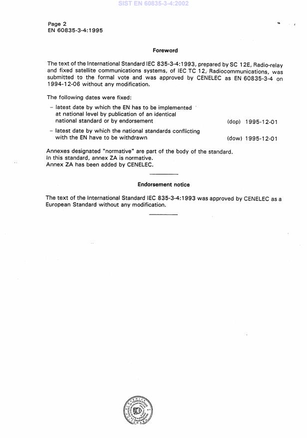 International Standard IEC 835-3-4 has been prepared by sub-committee 12E: Radio-relay