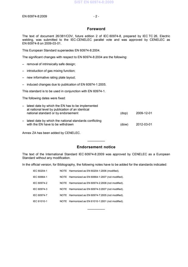 This European Standard supersedes EN 60974-8:2004.