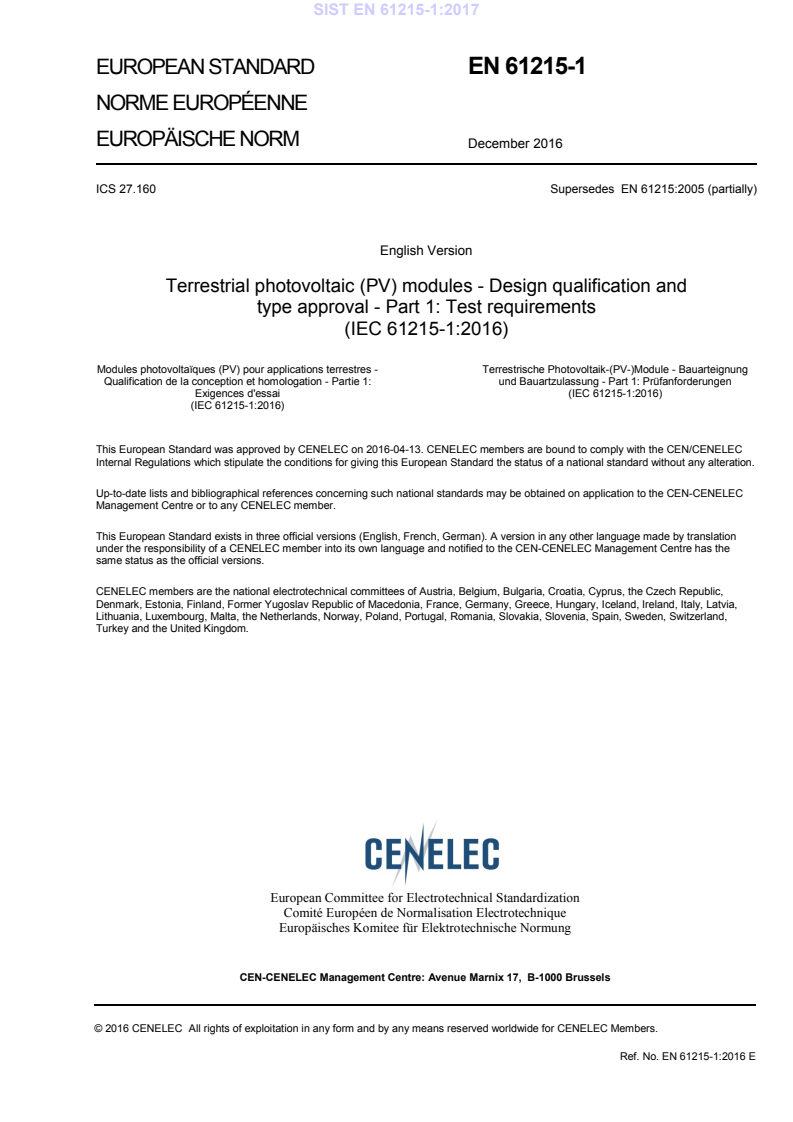 CENELEC as EN 61215-1:2016.