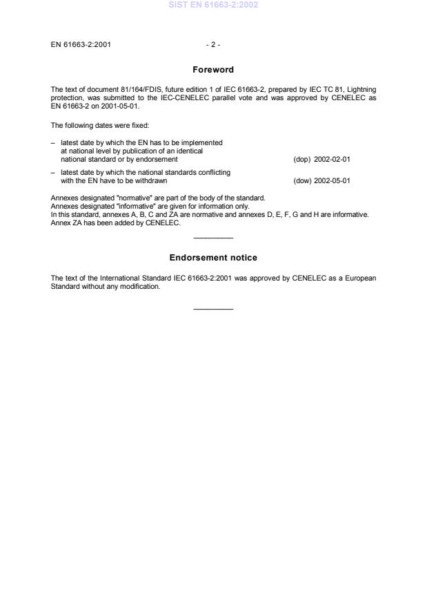 The text of the International Standard IEC 61663-2:2001 was approved by CENELEC as a European