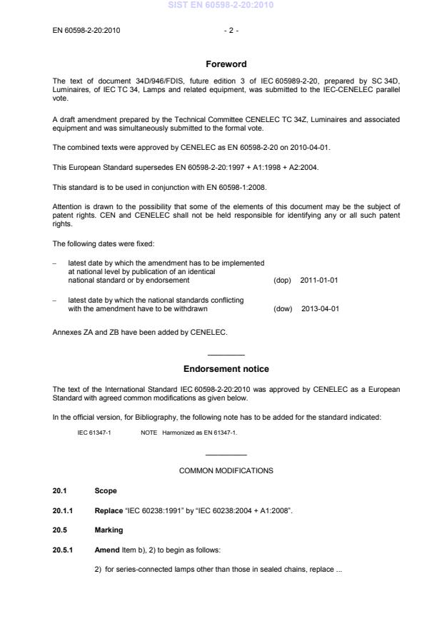 ICS 29.140.40 Supersedes EN 60598-2-20:1997 + A1:1998 + corr. Dec.1998 + A2:2004 + corr. Sep.2004