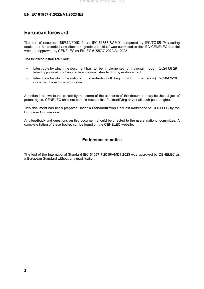 This amendment A1 modifies the European Standard EN IEC 61557-7:2022; it was approved by CENELEC on 2023-09-29. CENELEC