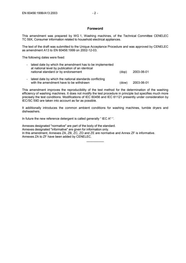 This amendment was prepared by WG 1, Washing machines, of the Technical Committee CENELEC