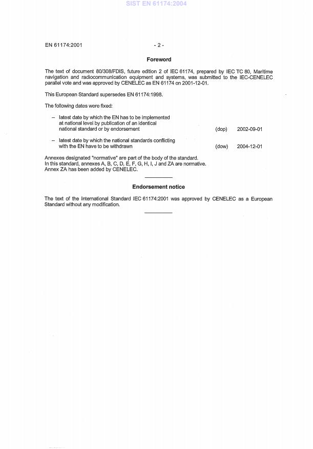 EN 61174:2001 has the following relationships with other standards: It is inter standard links to EN 61174:2008, EN 61162-1:2000, EN 60872-1:1998, EN 60945:1997, EN 62388:2008, EN 62288:2008, EN 61924:2006, EN 60936-3:2002. Understanding these relationships helps ensure you are using the most current and applicable version of the standard.