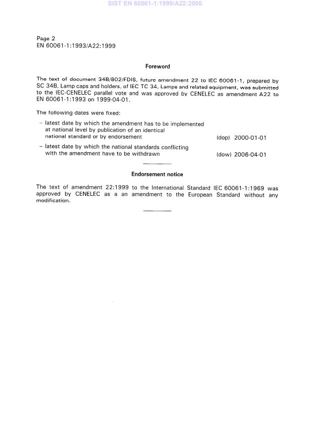 Ta slovenski standard je istoveten z: EN 60061-1:1993/A22:1999