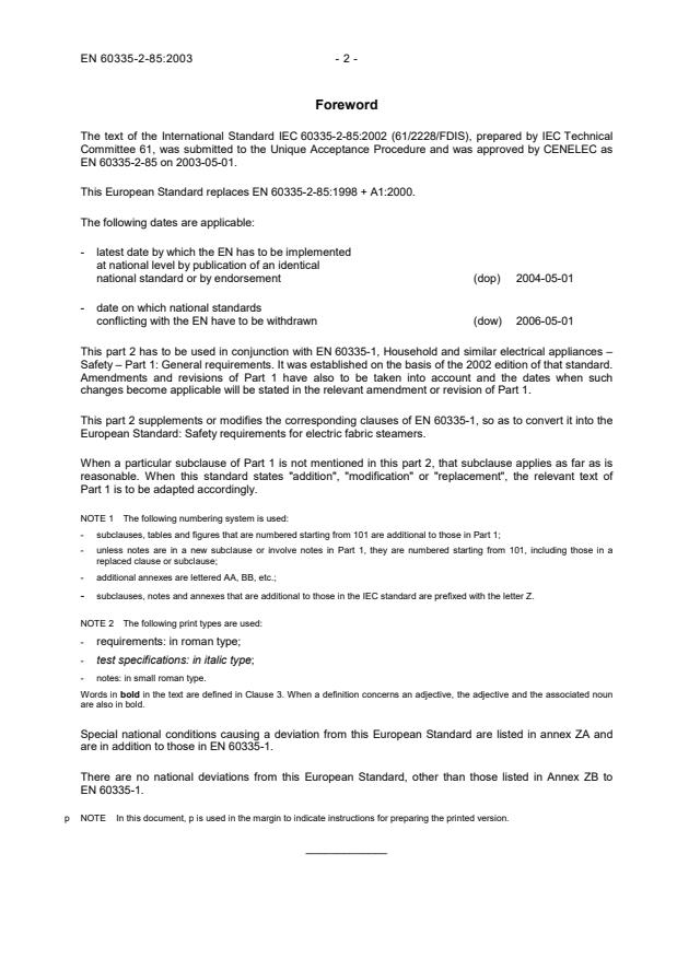 Overview - EN 60335-2-85:2003 (IEC 60335-2-85)