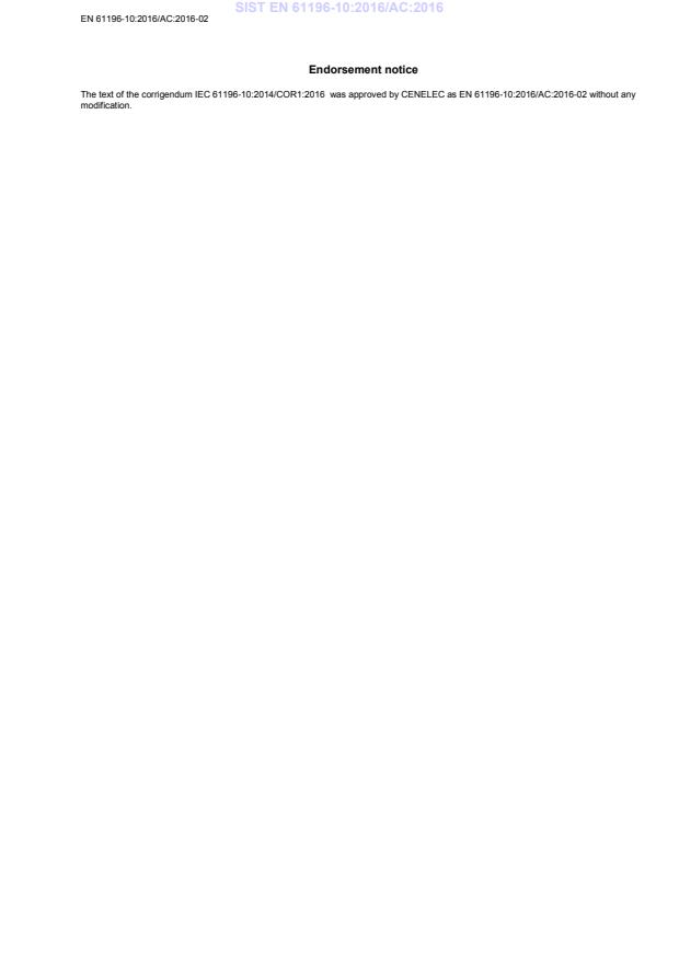 EN 61196-10:2016/AC:2016-02 has the following relationships with other standards: It is inter standard links to EN 61196-10:2016. Understanding these relationships helps ensure you are using the most current and applicable version of the standard.