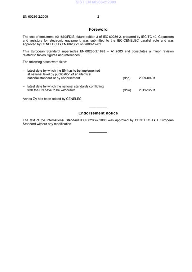 This European Standard supersedes EN 60286-2:1998 + A1:2003 and constitutes a minor revision