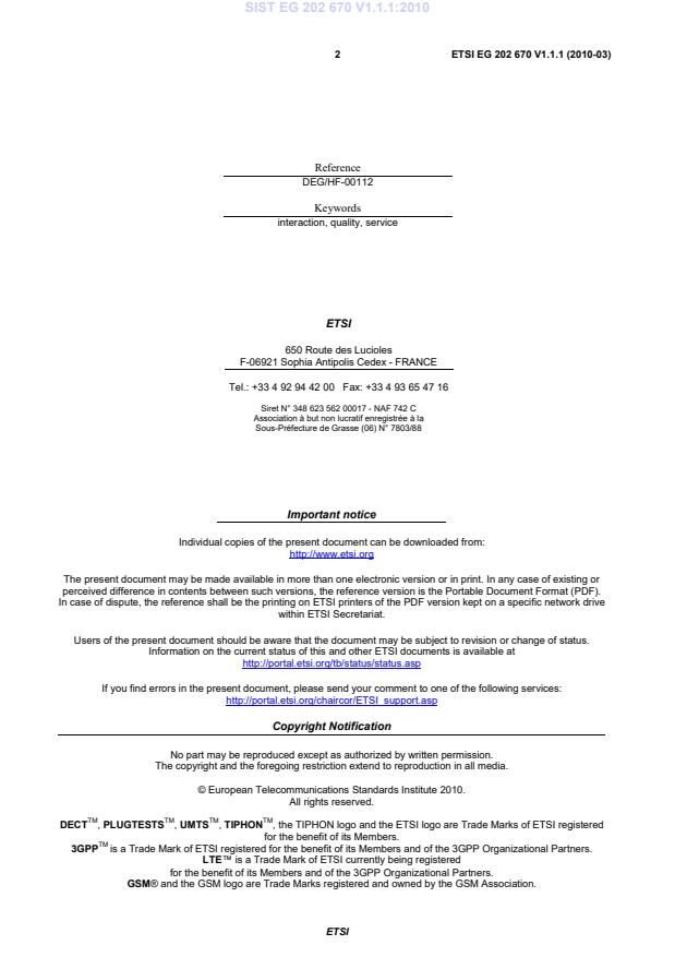 2 ETSI EG 202 670 V1.1.1 (2010-03)