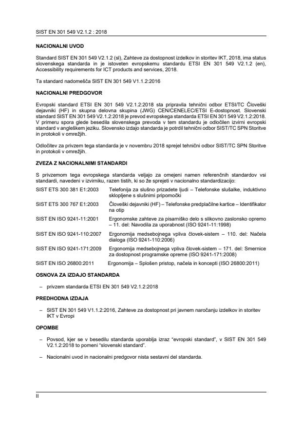 Ta dokument določa zahteve za funkcijsko dostopnost proizvodov in storitev IKT, vključno z opisom preskusnih postopkov in metodologije ocenjevanja, za vsako zahtevo za dostopnost v obliki, ki bi se lahko uporabila pri javnem naročanju znotraj Evrope. Ta dokument je morda uporaben tudi za druge namene, kot je naročanje v zasebnem sektorju.