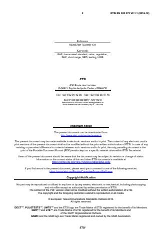 2 ETSI EN 302 372 V2.1.1 (2016-12)